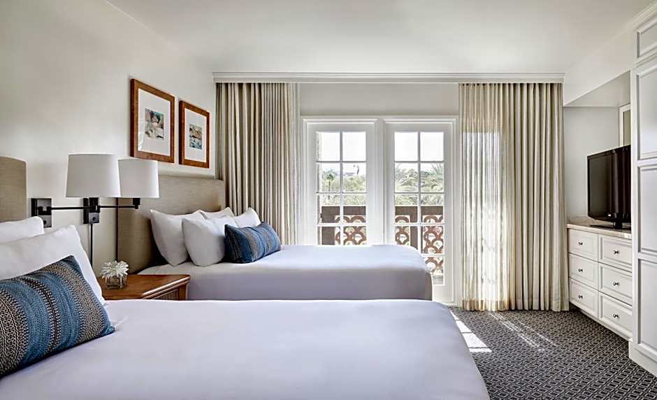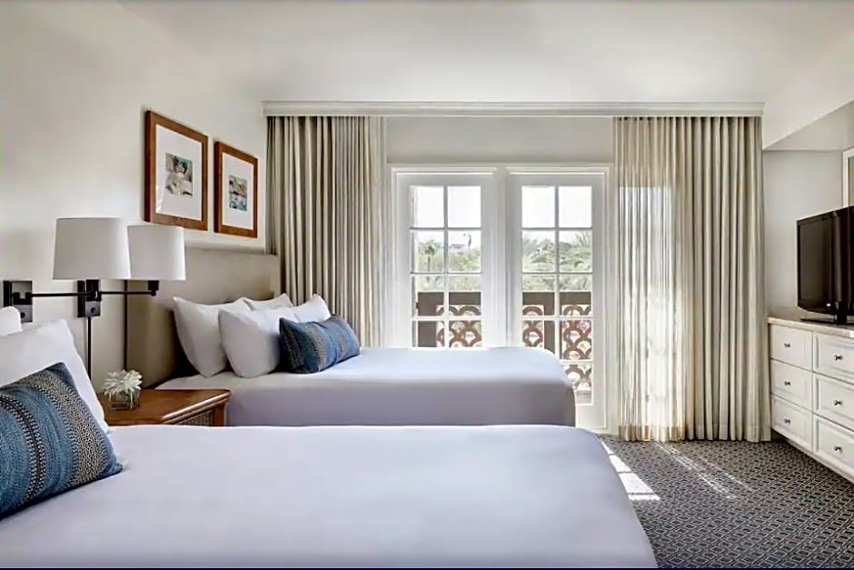 砂漠を想起させるデザインが敷地内に巡らされ、テラスや庭園、バルコニーが点在しています。Suite(キング、ゴルフビュー)、Deluxe Suite Vip(キングおよび2クイーン)、二つのクイーンベッドを備えたDeluxe Queen Suiteなど、約540平方フィートの間取りのスイートがいくつかあり、主寝室にソファベッドを組み合わせたタイプもあります。ヴィラとスイートが混在するこうした構成は、家族での冒険にも落ち着いた休暇にも向いており、敷地内のアメニティへも気軽にアクセスできます。